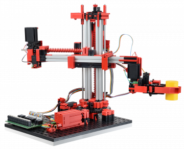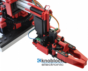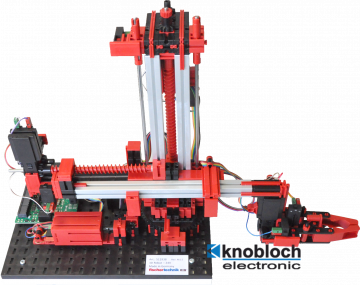 Der 3-Achsroboter mit Greifzange positioniert schnell und präzise Werkstücke im dreidimensionalen Raum. Freiheitsgrade: Achse 1: drehen 180°, Achse 2: vor/zurück 90 mm, Achse 3: heben/senken 150 mm. Das Modell ist ideal kombinierbar mit “Transportband“, “Stanzmaschine“, “Taktstraße“