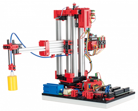 3-Achsroboter mit Vakuum-Sauggreifer positioniert schnell und präzise Werkstücke im dreidimensionalen Raum. Arbeitsbereich: X-Achse 270°, Y-Achse (vor/zurück) 140 mm, Z-Achse (hoch/runter) 120 mm.