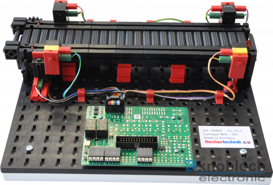 Das Modell verfügt über eine Leiterplatte mit Relais zur Drehrichtungsumkehr der Motoren. Alle Ein- und Ausgänge sind sowohl auf Wannenstecker (26-polig, Raster 2,54mm) als auch auf Reihenklemmen mit Steckklemmanschluss (Push-In) herausgeführt.